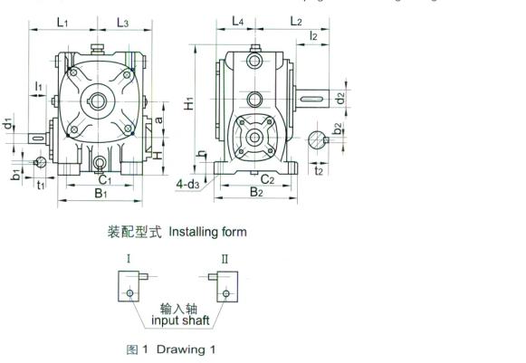 件:蝸桿輸入轉(zhuǎn)速不超過1500r/min;工作環(huán)境溫度-40~~40℃,當(dāng)